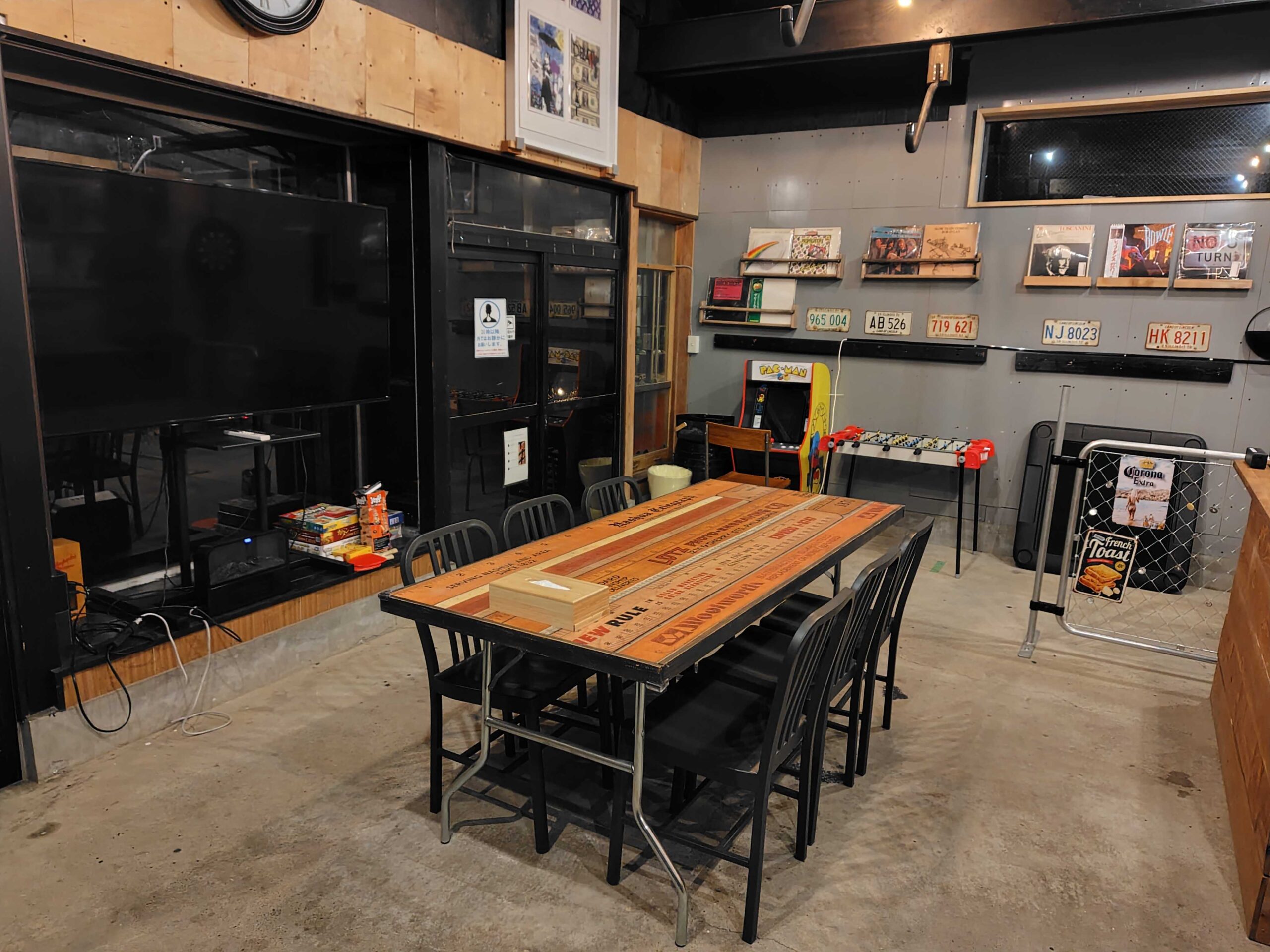 ガレージにはパックマンやダーツ、ボードゲームが置いてあり、人数に関係なく楽しめるようになっています。