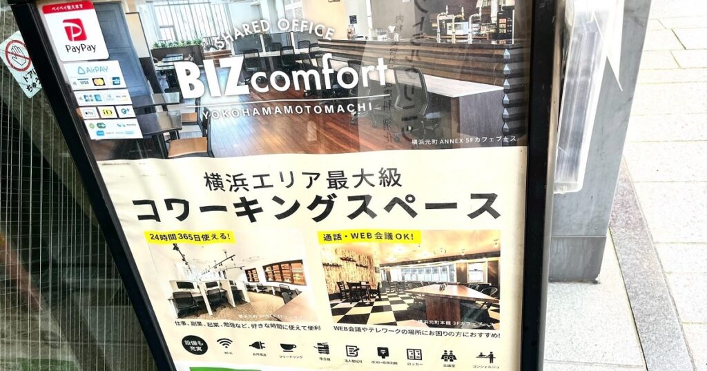 今回、ドロップインでも利用可能なコワーキングスペースである BIZcomfort横浜元町 で仕事をしようと思っていたのですが、日曜日に行ったため営業しておらず。。。