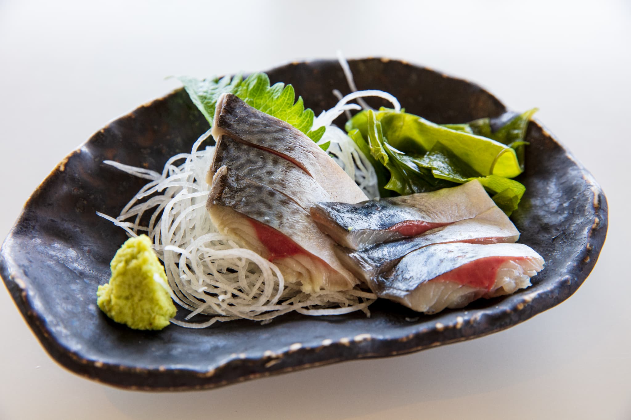 サバは「サバの生き腐れ」と言われるほど鮮度が落ちるのが早く、釣り上げたらすぐに死んでしまうためサバの刺身は新鮮な証。言うまでもなく美味でした。
