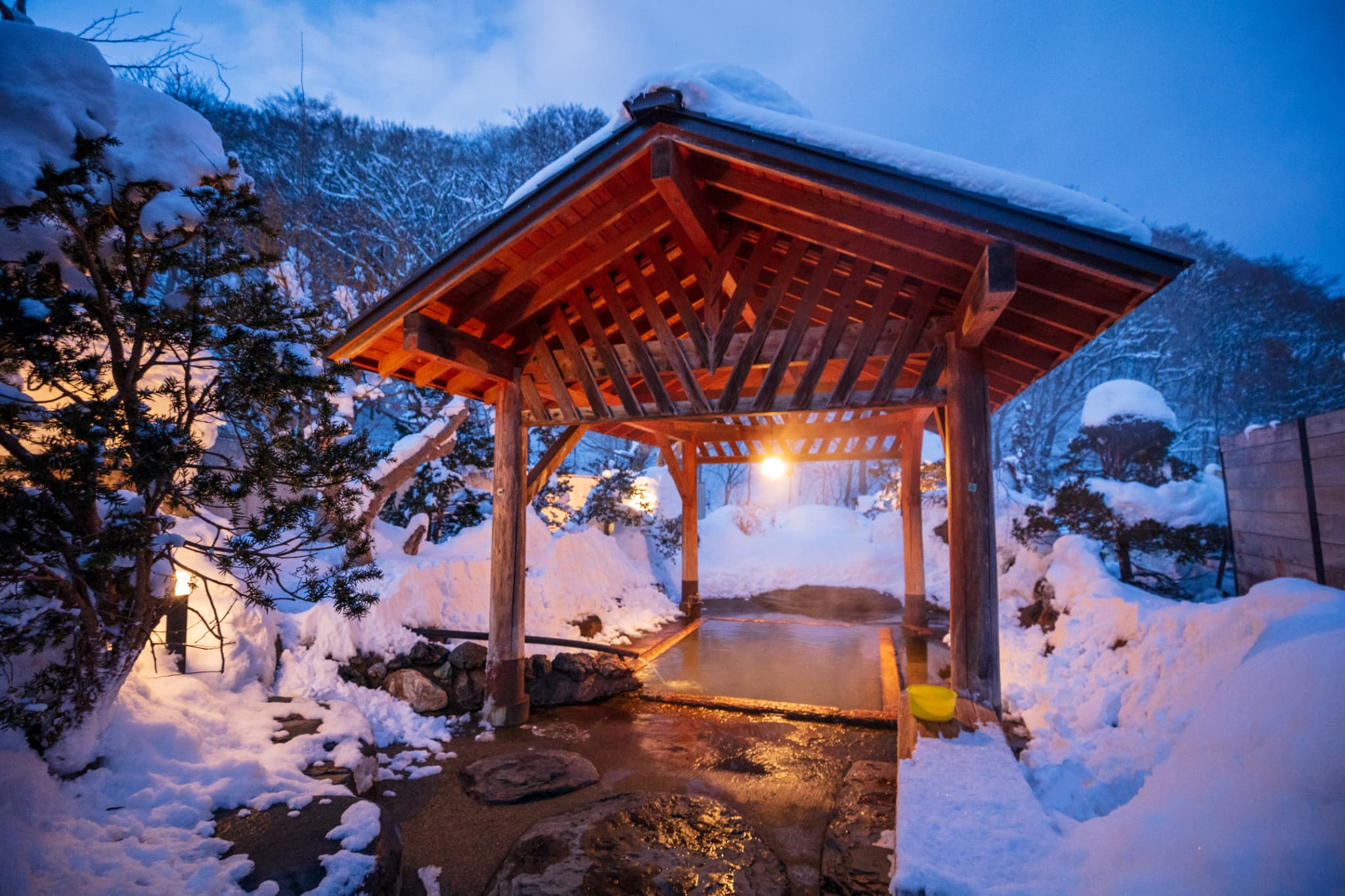 こちらの旅館には泉質の異なる2つの内湯と貸切の露天風呂があり、いずれも湯加水なし/加温なし/掛流し、飲泉することができます。